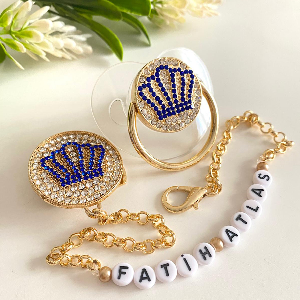 Set İçeriği: Kral tacı şeffaf emzik ve zinciri.